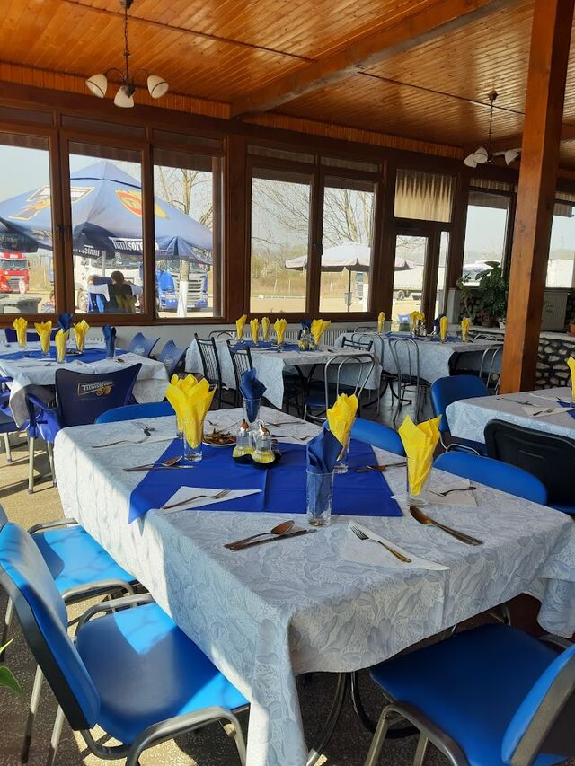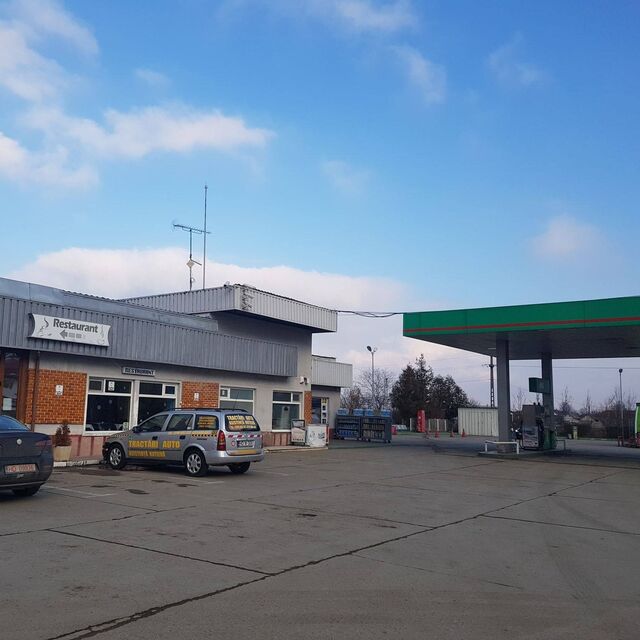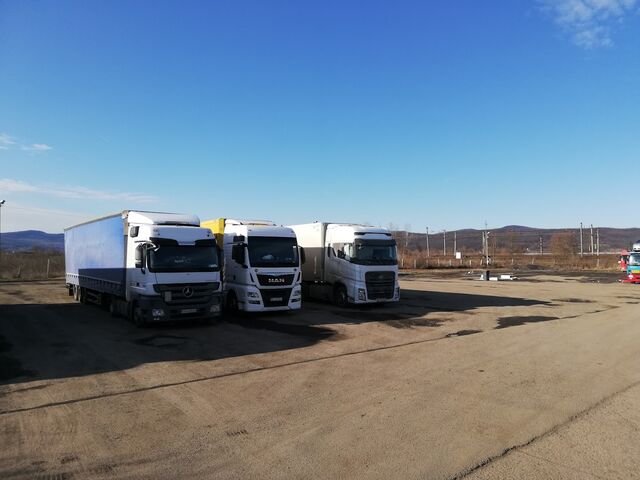 Parcare de tiruri păzită, plus supraveghere video, dușuri, internet.